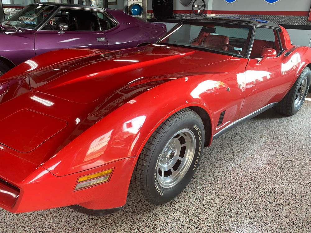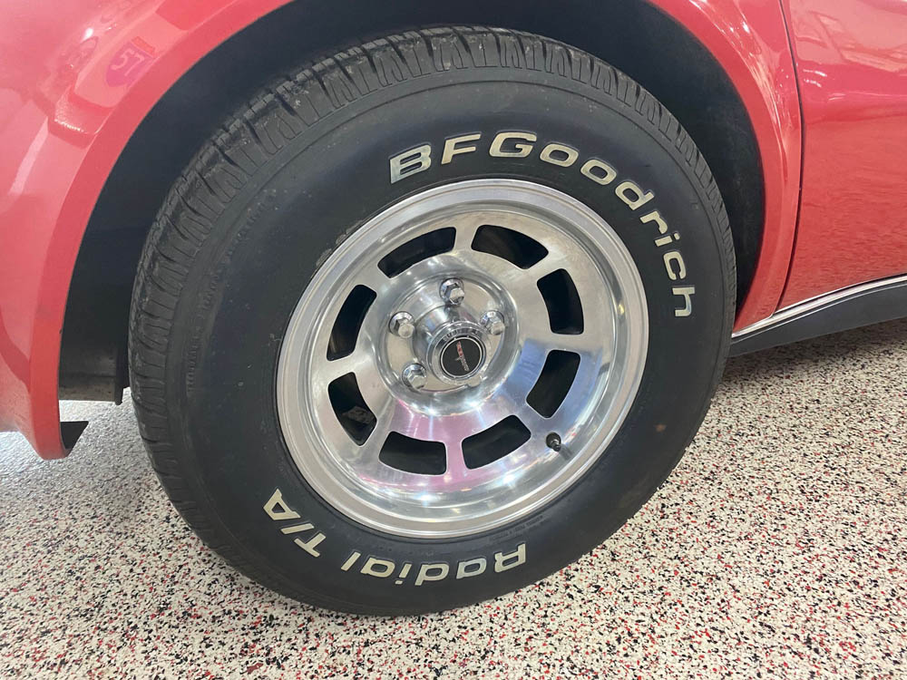 It has new raised white letter 255 /60R15 tires with less than 100 miles on them mounted to the original N90 aluminum wheels. The brakes are new stainless steel lined calipers. The car has only 65,000 original miles and runs and drives great!! It is getting harder and harder to find original and unmolested cars like this, especially in the coveted red on red scheme. The 80-82 Corvettes are becoming more popular and desirable with resultantly increasing prices.