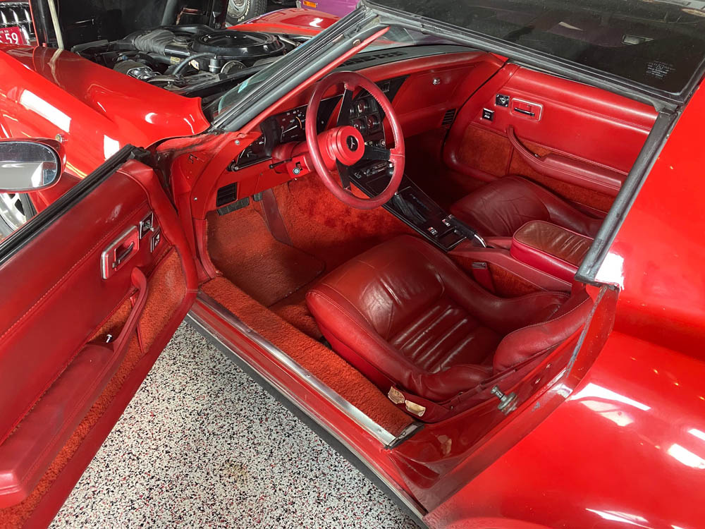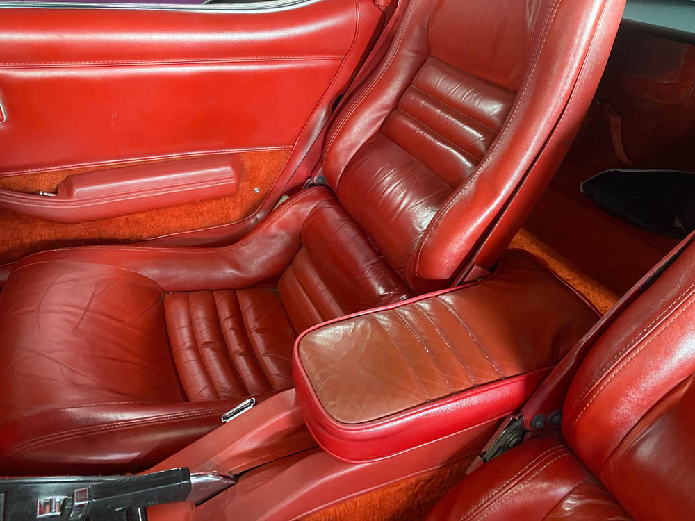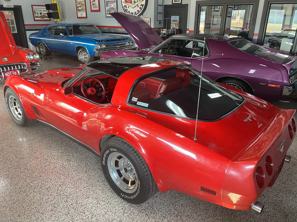 We have this beautiful Red on Red 1980 Corvette now available for sale. It is a local car that was owned by the same owner for over 30 years and is only a two owner car. It is VERY original and has been Bloomington Gold Survivor certified. It has the original numbers matching 350 motor with automatic transmission. The paint is VERY nice original, but not perfect as would be expected at 40 years old. The red interior is all original as well. It has power windows, power locks, rear defrost, cruise control, working original R12 A/C, the original optional cassette radio with the optional dual rear original speakers and power antenna. It also has the original optional glass T-tops that are in great shape. The original catalytic converter is not on the car currently but is included, and the exhaust is original with chrome bolt on tail pipe extensions. The original (not reproduction) window sticker is included as well.